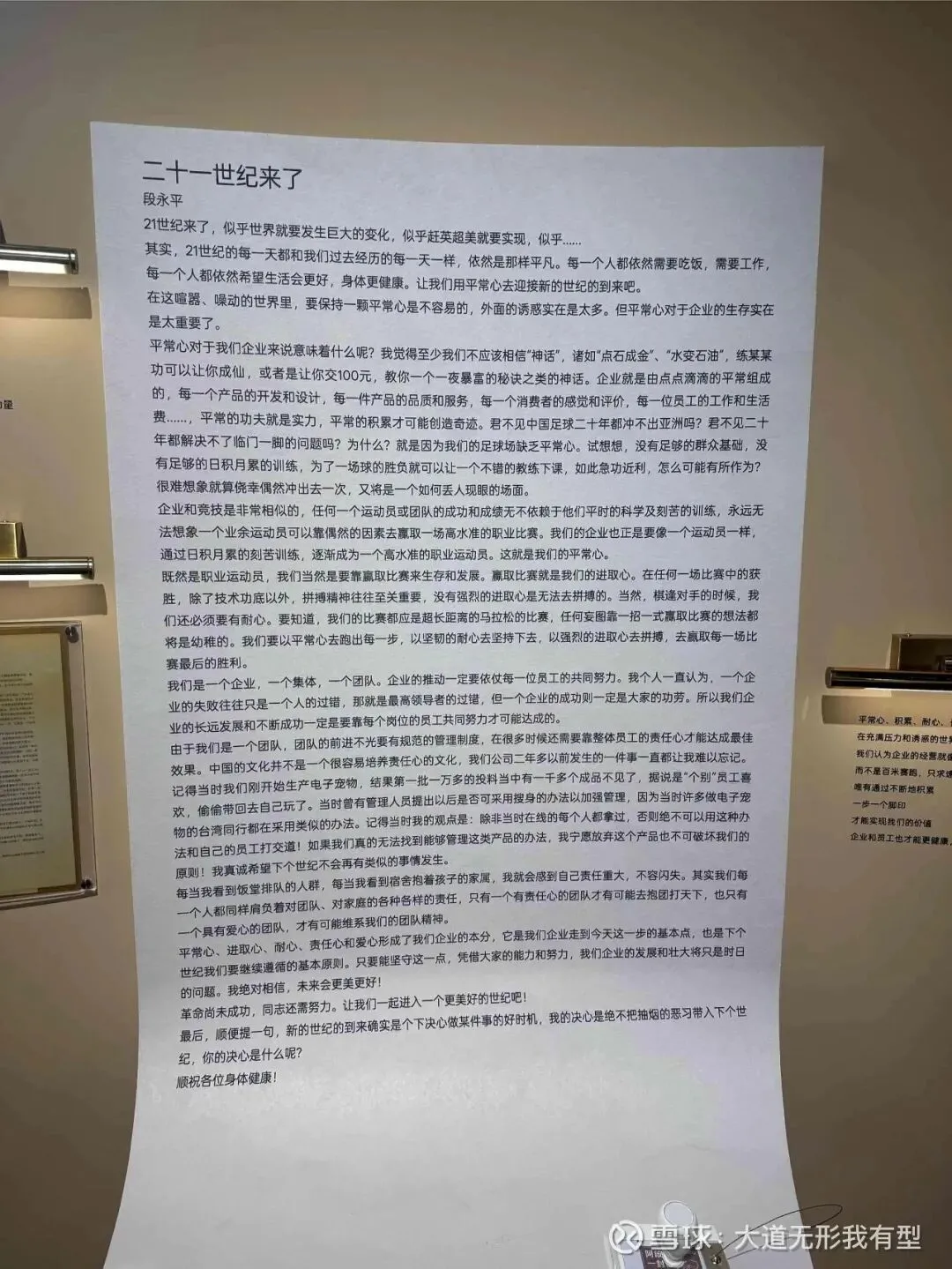 9月18日,段永平在雪球罕見曬出一張貼在墻上的舊文照片,題目為《二十一世紀(jì)來了》,并配文:“更健康更長久!爭取下個(gè)三十年我還能來!”